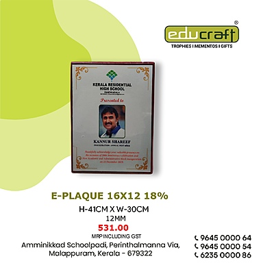 E-PLAQUE 16X12" 41CM 18%